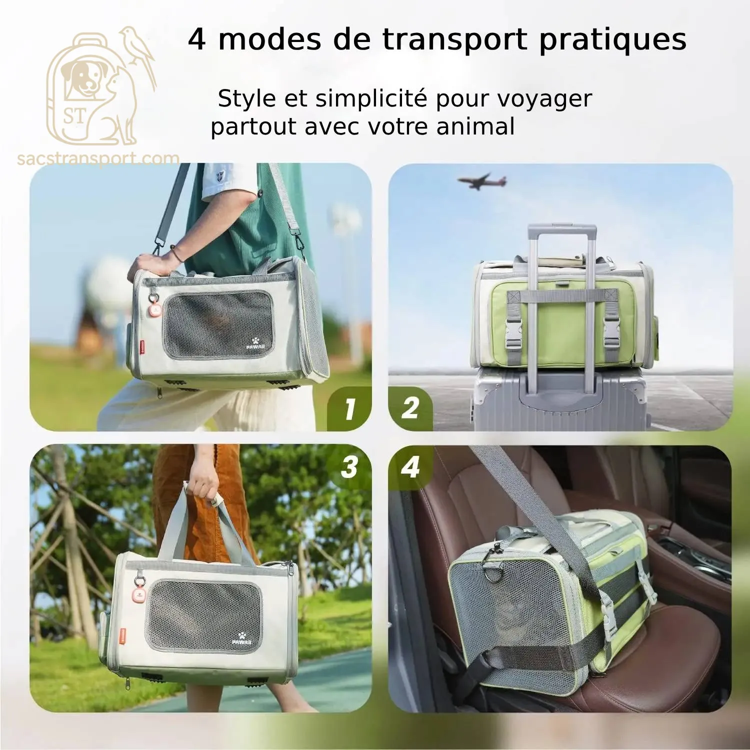 Ce sac de voyage chat a été pensé pour simplifier vos déplacements et assurer le bien-être de votre animal. Grâce à ses quatre modes de portage – bandoulière, poignée main, fixation sur valise, ou porté en sac – il s’adapte à vos besoins et à votre confort. Les parois respirantes et les grilles d’aération sur quatre côtés garantissent une circulation d’air optimale, même lors des longues attentes en aéroport. Enfin, la fermeture à double zip et la laisse intégrée sécurisent votre chat pendant tout le voyage.