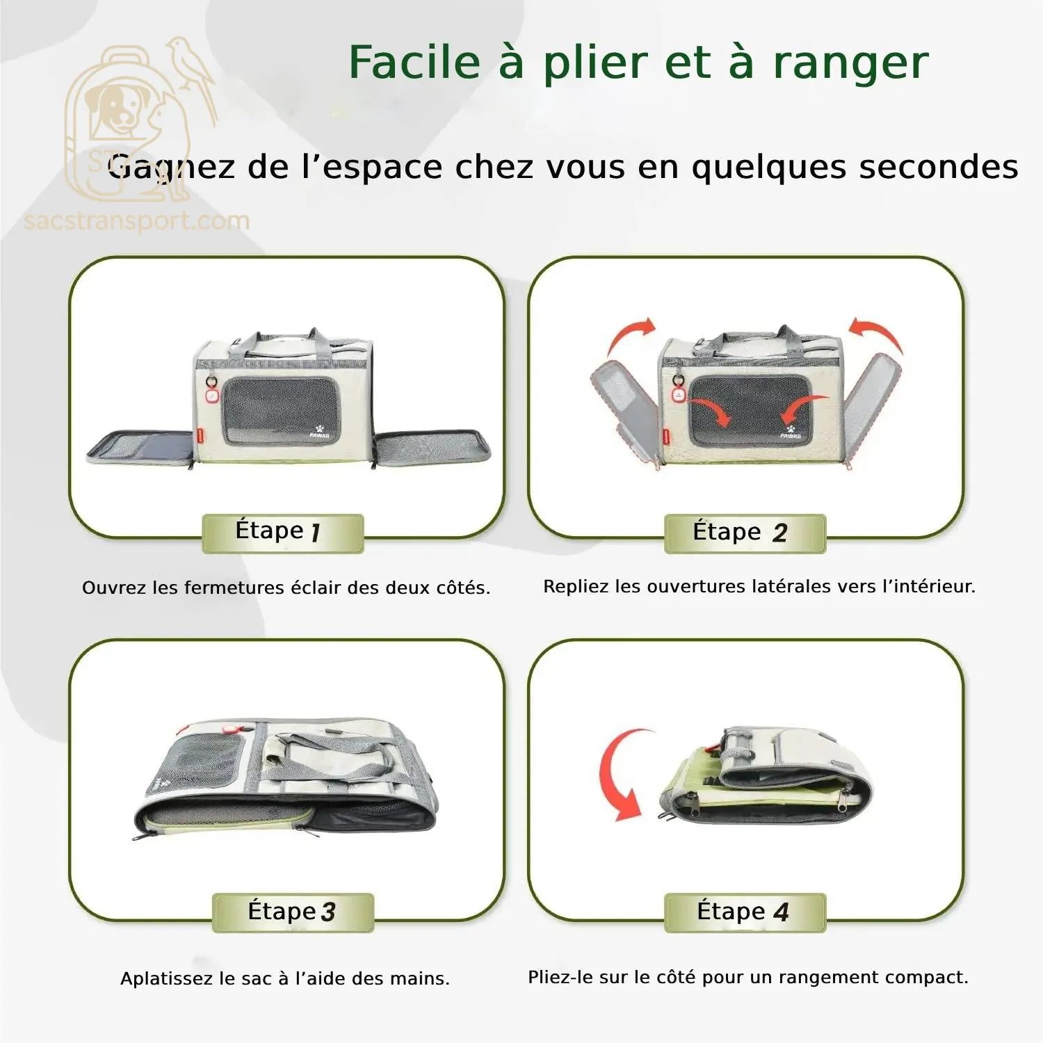 - Intérieur sécurisé : laisse intégrée pour éviter les escapades + fermeture zip double curseur solide