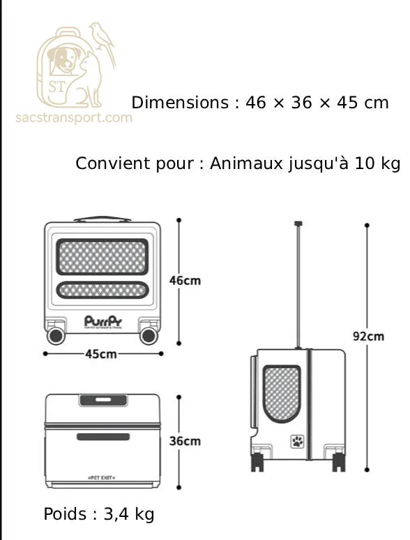 Offrir à votre compagnon félin un voyage confortable et sécurisé n’a jamais été aussi simple grâce à cette valise de transport chat. Ainsi pensée pour combiner élégance et praticité, elle est parfaite pour tous vos déplacements, qu’il s’agisse d’un week-end improvisé ou d’un trajet international. C’est pourquoi sa structure rigide protège efficacement votre animal, tandis que ses roulettes silencieuses rendent vos déplacements fluides, même dans les environnements animés. Avec son design moderne, elle allie confort, sécurité et style pour le plaisir de votre chat… et le vôtre.